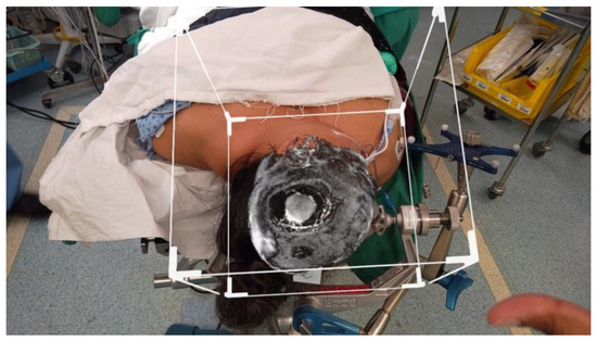 All patients underwent the same procedure to evaluate the feasibility of using HoloLens 2. All patients were placed on a Mayfield clamp in the desired position. Using the optical navigation module of Stealth S8, patients were registered using the pre-operative MRI images. Surface landmarks were checked to ensure that registration was accurate and acceptable for the purposes of the surgery. Subsequently, the primary user of the HoloLens 2 donned the device. The 3D-rendered image was then moved manually to overlay with the patient’s head. This was achieved using surface landmarks such as the pinna, nasion and tip of the nose. The limitations of manual overlay are discussed later. VSI software retained the spatial memory of the image overlaid on the patient’s skull. The surgical incision and craniotomy were decided based on neuronavigation.