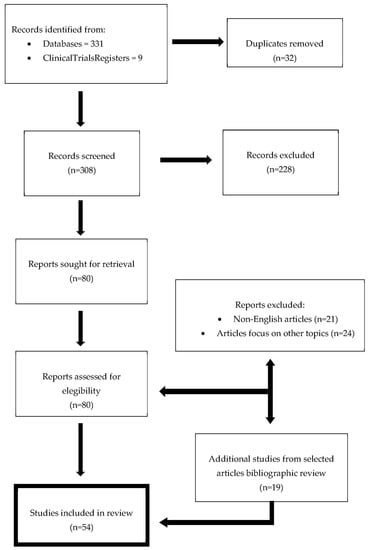 A total of 370 results were retrieved. Two reviewers (X.P and M.G) scanned for duplicates and selected the desired studies for further research. Only manuscripts in English were considered. After initial individual review, the most relevant studies prioritizing high-level evidence were selected for final review. Additional relevant studies were included following the previously selected works’ bibliographic review. A final review of 54 studies was performed.