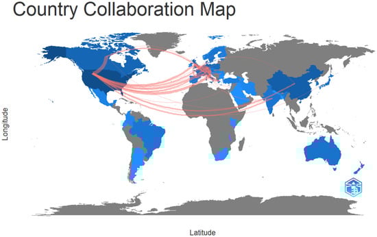 Regarding LUTS-related microbiome research, the three strongest networks were found in the United States, Europe, and China. The country collaboration map is represented in Figure 4.