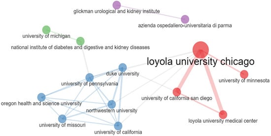 The top three most collaborative networks were Loyola University Chicago, Loyola University Medical Center, and the University of California San Diego. Figure 5 represents the fourteen most active universities and/or institutes in this field (Figure 5).