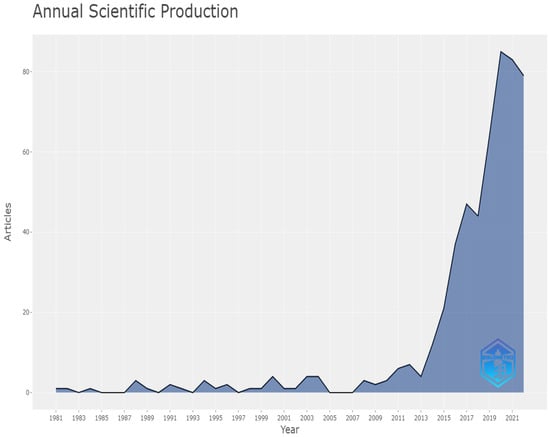Figure 10 depicts the annual rate of scientific production, with the oldest article published in 1981 and the newest published in 2021.