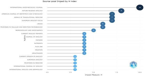 The highest source local impact according to the h-index was achieved by the International Urogynecology Journal, followed by Nature Reviews Urology (Figure 11).