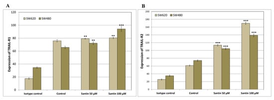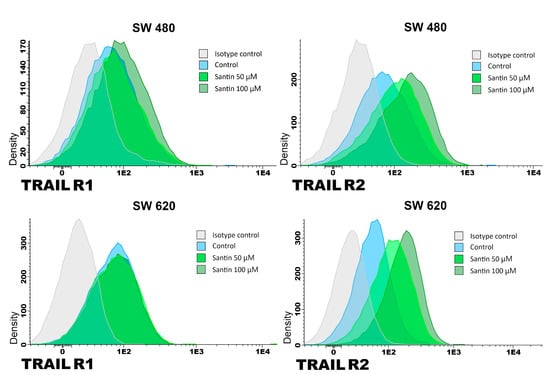 Kłósek, M.; Jaworska, D.; Pietsz, G.; Szliszka, E. Santin (5,7-Dihydroxy-3,6,4′-Trimetoxy-Flavone) Enhances TRAIL-Mediated Apoptosis in Colon Cancer Cells. Life 2023, 13, 592. https://doi.org/10.3390/life13020592