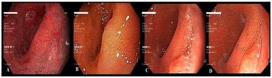 The patient was monitored shortly after the procedures and on the long run, endoscopy being performed after 3, 6 and 12 months, revealing complete local healing in a normal clinical context, outside of a mild persistent abdominal pain managed by proton pump inhibitors, non-steroidal anti-inflammatory drugs and pain medication. A rapid urease test was performed, with negative results due to eradication therapy that the patient was offered meanwhile. Furthermore, endoscopic ultrasound was conducted shortly after the resection and 12 months after, in order to confirm complete resection.