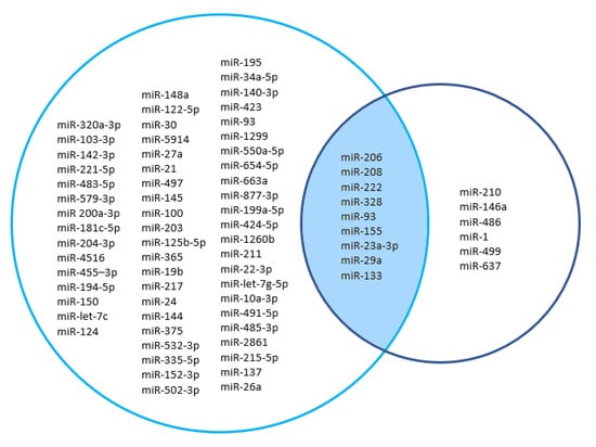 - Kim, H.K.; Lee, Y.S.; Sivaprasad, U.; Malhotra, A.; Dutta, A. Muscle-specific microRNA miR-206 promotes muscle differentiation. J. Cell Biol. 2006, 174, 677–687. [Google Scholar] [CrossRef] [PubMed]