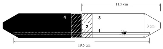 Light/dark test: 1—wooden stick; 2—rubber ring; 3—transparent tube; 4—black tube.