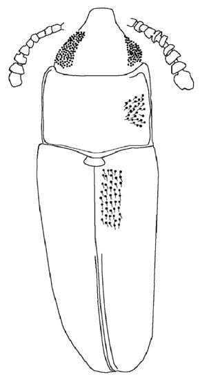 - Lyubarsky, G.Yu.; Perkovsky, E.E. Xenophagus, a new genus of pleasing fungus beetles (Coleoptera: Erotylidae) from Baltic amber. Russ. Entomol. J. 2017, 26, 147–150. [Google Scholar] [CrossRef]