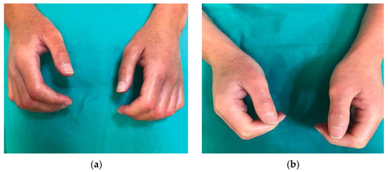 Patient with systemic sclerosis limited to the hands: (a) Patient’s condition prior to treatment with UVA1 phototherapy; (b) response of the patient after treatment with 25 sessions of UVA1 phototherapy at low doses.
