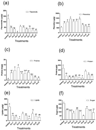 3.2. Effect of Copper on Total Chlorophyll Contents
