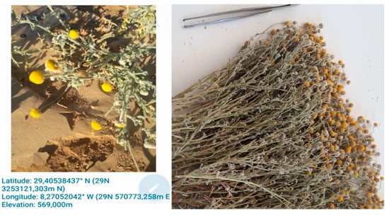 Plants have several pharmacological properties which are linked to the presence of various bioactive compounds, including among others, terpenoids, phenolic acids and flavonoids []. Several species of plants have been proposed as phytomedical to treat several diseases [,]. The family Asteraceae, or Composite, with the common names asters, daisies or sunflowers, contains a number of genera frequently used for therapeutic purposes. Species in this family contain a wide range of phenolic phytochemicals, essential oils, steroids and terpenoids [].