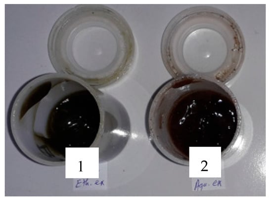 Ointments were prepared from aqueous and ethanolic dry extracts of the aerial parts of B. cinerea at 10% in Vaseline® by gentle trituration until the mixture was homogenized. The resulting ointments (Figure 2) were packed in hermetically sealed jars and stored until use.