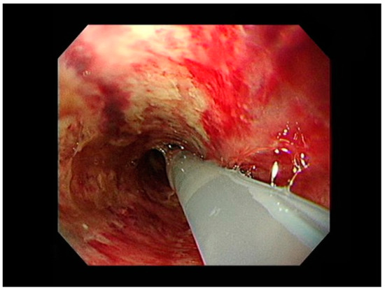 - Tseng, Y.-L.; Wu, M.-H.; Lin, M.-Y.; Lai, W.-W. Massive Upper Gastrointestinal Bleeding after Acid-corrosive Injury. World J. Surg. 2004, 28, 50–54. [Google Scholar] [CrossRef] [PubMed]