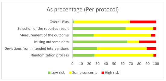 - Sterne, J.A.C.; Savović, J.; Page, M.J.; Elbers, R.G.; Blencowe, N.S.; Boutron, I.; Cates, C.J.; Cheng, H.-Y.; Corbett, M.S.; Eldridge, S.M.; et al. RoB 2: A Revised Tool for Assessing Risk of Bias in Randomised Trials. BMJ 2019, 366, 14898. [Google Scholar] [CrossRef]
