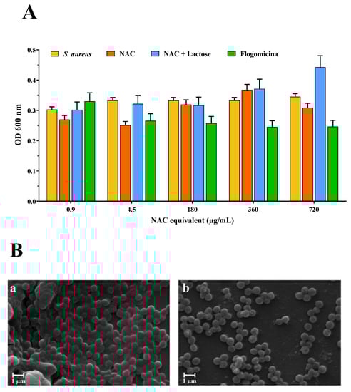 - Guerini, M.; Perugini, P.; Grisoli, P. Evaluation of the Effectiveness of N-Acetylcysteine (NAC) and N-acetylcysteine-cyclodextrins Multi-Composite in Pseudomonas aeruginosa Biofilm Formation. Appl. Sci. 2020, 10, 3466. [Google Scholar] [CrossRef]