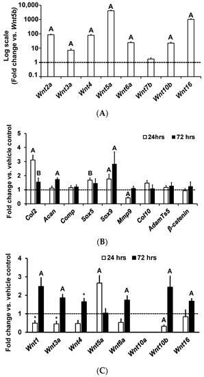 - Dell’accio, F.; De Bari, C.; Eltawil, N.M.; Vanhummelen, P.; Pitzalis, C. Identification of the molecular response of articular cartilage to injury, by microarray screening: Wnt-16 expression and signaling after injury and in osteoarthritis. Arthritis Rheum. 2008, 58, 1410–1421. [Google Scholar] [CrossRef]