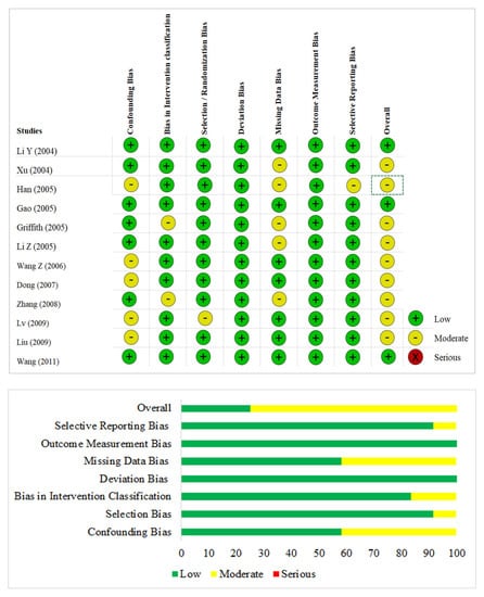 Three reviewers independently assessed the methodological quality of the included studies using the Cochrane Collaboration’s ROBINS tool for non-randomized studies that have seven domains of assessment.