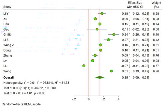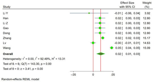 - Higgins, J.P.T.; Thompson, S.G.; Deeks, J.J.; Altman, D.G. Measuring Inconsistency in Meta-Analyses. BMJ 2003, 327, 557–560. [Google Scholar] [CrossRef] [PubMed]