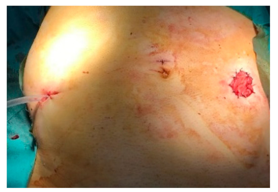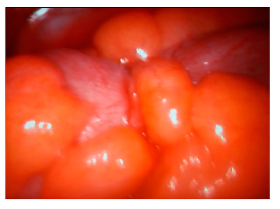 A drain tube is installed in the space of Douglas, exteriorized through the trocar hole in the right iliac fossa (Figure 6).