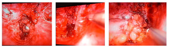 Adhesiolysis is performed with the hook, “cold” or electric scissors, Ligasure or ultrasound (Figure 10).