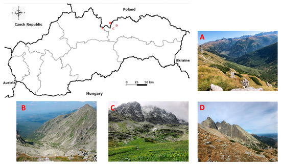 The localities under study are situated in the alpine zone of the Tatra Mts.: Lomnické sedlo, Velická dolina, Tomanovská dolina (Slovak part of Tatra Mts.), and Dolina Waksmundzka (Polish part of Tatra Mts.) (Figure 1, Table 1).