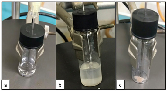 General observations during the polymerization process of nitriles 11 and 12 under argon. (a) Nitrile monomer dissolved in degassed water, (b) solution turning turbid after a few hours, (c) solid recovered after washing and drying.