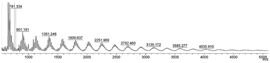 MALDI MS spectrum of poly(Cys-Ala).