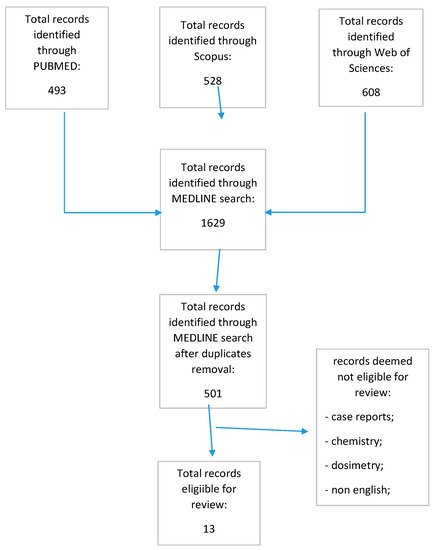 The MEDLINE search conducted on three different sources identified a total of 501 records after duplicate removal. Again, after skimming the retrieved records and eliminating the studies that were unrelated, a total of 13 studies dating from 2009 to 2021 were deemed eligible for review (Figure 1).