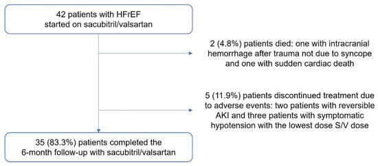- Abumayyaleh, M.; El-Battrawy, I.; Kummer, M.; Pilsinger, C.; Sattler, K.; Kuschyk, J.; Aweimer, A.; Mügge, A.; Borggrefe, M.; Akin, I. Comparison of the prognosis and outcome of heart failure with reduced ejection fraction patients treated with sacubitril/valsartan according to age. Future Cardiol. 2021, 17, 1131–1142. [Google Scholar] [CrossRef]