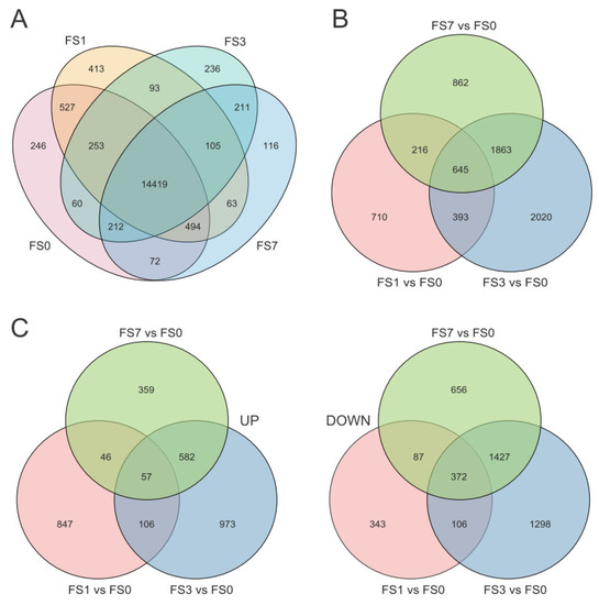 | Upregulated | Downregulated | Upregulated | Downregulated | Upregulated | Downregulated | |