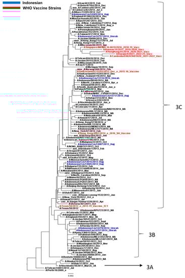 2.5. Phylogenetic Analysis of Influenza A/H3N2 Virus