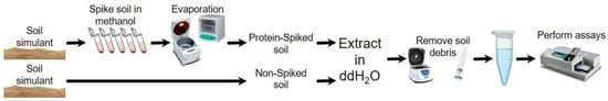 Spiking, extraction, and quantification steps for recovery of protein from soil simulants.