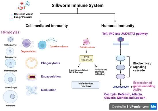 Innate immune mechanisms in silkworm (Created in BioRender.com).