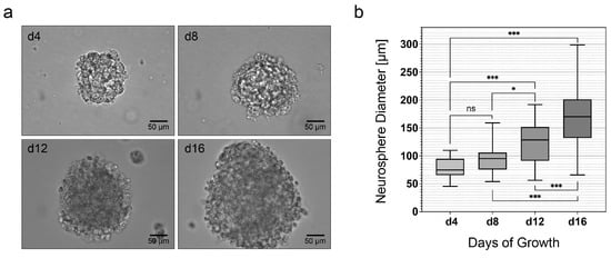 - Mori, H.; Ninomiya, K.; Kino-oka, M.; Shofuda, T.; Islam, M.O.; Yamasaki, M.; Okano, H.; Taya, M.; Kanemura, Y. Effect of neurosphere size on the growth rate of human neural stem/progenitor cells. J. Neurosci. Res. 2006, 84, 1682–1691. [Google Scholar] [CrossRef] [PubMed]