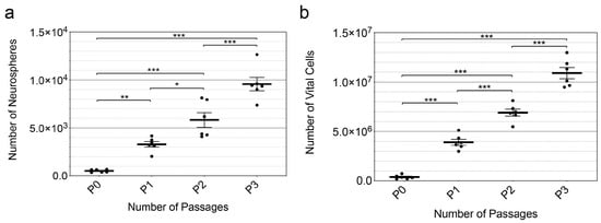 3.1. Increasing Neurosphere Size and Number over Time Demonstrate the Proliferation Capacity of MGB NSCs