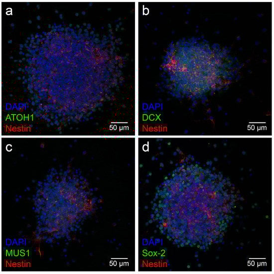 - Rak, K.; Wasielewski, N.V.; Radeloff, A.; Volkers, J.; Scherzed, A.; Jablonka, S.; Hagen, R.; Mlynski, R. Isolation and characterization of neural stem cells from the neonatal rat cochlear nucleus. Cell Tissue Res. 2011, 343, 499–508. [Google Scholar] [CrossRef]