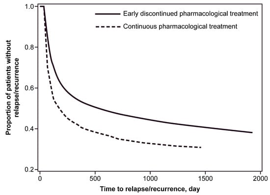 - Heerdink, E.R.; Gardarsdottir, H.; Egberts, T.C.; Stolker, J.J. Duration of Antidepressant Drug Treatment and Its Influence on Risk of Relapse/Recurrence: Immortal and Neglected Time Bias. Am. J. Epidemiol. 2009, 170, 280–285. [Google Scholar] [CrossRef]