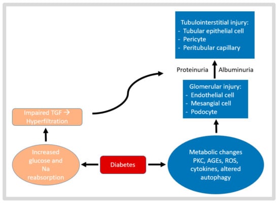 - Vallon, V.; Thomson, S.C. The tubular hypothesis of nephron filtration and diabetic kidney disease. Nat. Rev. Nephrol. 2020, 16, 317–336. [Google Scholar] [CrossRef]