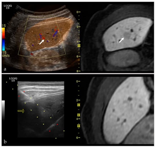 - Lee, M.W. Fusion imaging of real-time ultrasonography with CT or MRI for hepatic intervention. Ultrasonography 2014, 33, 227–239. [Google Scholar] [CrossRef]