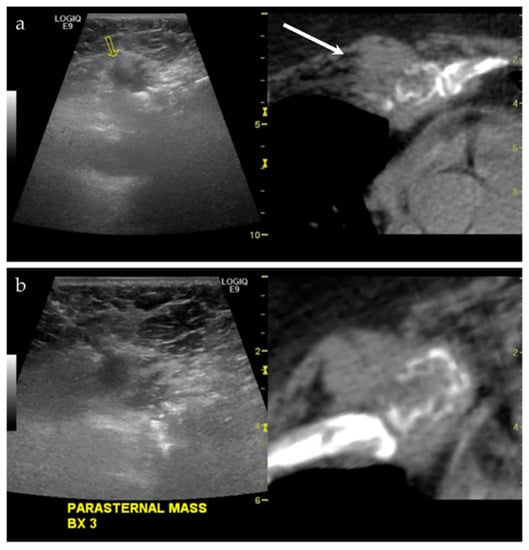 - Khalil, J.G.; Mott, M.P.; Parsons, T.W.; Banka, T.R.; Van Holsbeeck, M. 2011 mid-America orthopaedic association Dallas B. Phemister physician in training award: Can musculoskeletal tumors be diagnosed with ultrasound fusion-guided biopsy? Tumor. Clin. Orthop. Relat. Res. 2012, 470, 2280–2287. [Google Scholar] [CrossRef]