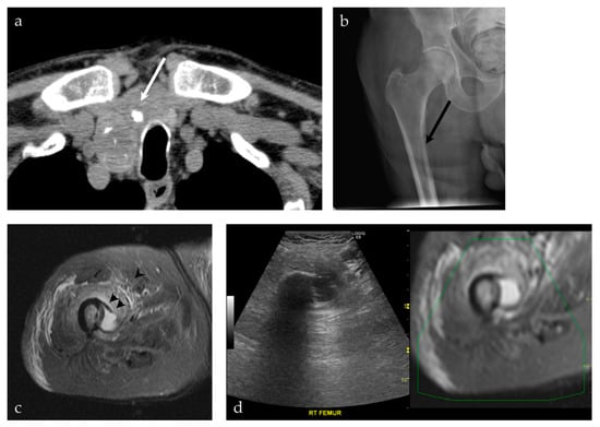 | 93/M | Right femur | US-MRI | Metastatic disease, papillary thyroid carcinoma | Neoplastic, malignant |