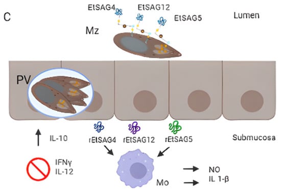 | E. mitis | MIC3 | Sz, Mz (A) | Yes | Host-parasite interaction, Immunoprotection | [86] |
