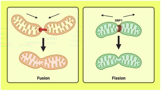 Mitochondria are incredibly adaptable organelles that perform various vital functions in the cell. In order to make use of substrates (such as pyruvate and NADH produced by glycolysis, acetyl co-a produced by lipid -oxidation, and glutamine) to generate energy in the form of ATP, mitochondria serve as the primary source of cellular energy generation [41]. Studies in obese and insulin-resistant people showed a reduction in skeletal muscle mitochondrial oxidative ability and faulty lipid metabolism compared to healthy, lean controls, providing the initial proof connecting mitochondrial dysfunction to resistance to insulin [42]. The multitude of extensively researched vital mitochondrial processes, including oxidative phosphorylation (OX-PHOS), calcium and reactive oxygen species (ROS) signaling, and apoptosis, emphasizes the crucial role of mitochondria [43]. Since it has been shown that they affect the performance of mitochondria, the study of mitochondrial shape and dynamics has gained considerable importance over the past ten years. The mitochondria have the capability to divide, fuse with one another, and shift across the cell. These activities are referred to as mitochondrial dynamics and entail the fission (division) and fusion processes, two different, highly regulated antagonistic activities [44] (Figure 4). Current findings suggest that mitochondrial dynamics and function are interrelated, maintaining the equilibrium between wellness and illness at the cell and organismal levels. Research is also concentrating on the crucial role of mitochondrial dynamics in the rise of resistance to insulin, precisely the harmony between fusion and fission mechanisms. The highly diverse physique of mitochondria is kept in check by an ever-changing balance within mechanisms that cause fission and fusion. These actions enable mitochondria to move locations inside a cell, exchange materials, and restore injured mitochondria [45].