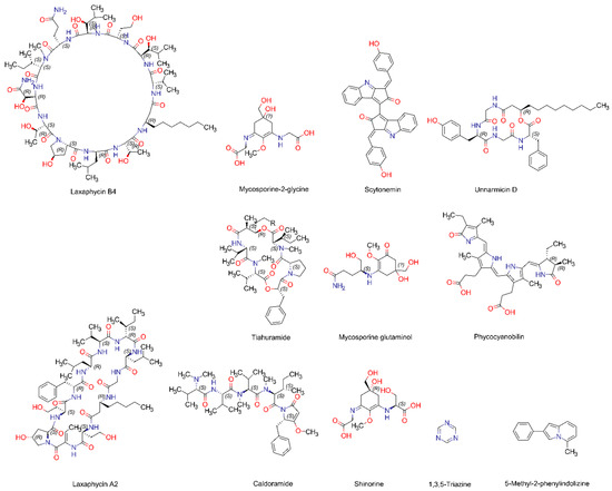- Saad, M.H.; El-Fakharany, E.M.; Salem, M.S.; Sidkey, N.M. The use of cyanobacterial metabolites as natural medical and biotechnological tools: Review article. J. Biomol. Struct. Dyn. 2022, 40, 2828–2850. [Google Scholar] [CrossRef]