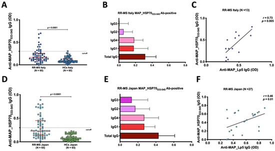 3.1. Anti-MAP_HSP70533–545 Antibodies Are Prevalent in Japanese and Italian RR-MS Patients