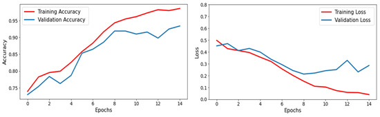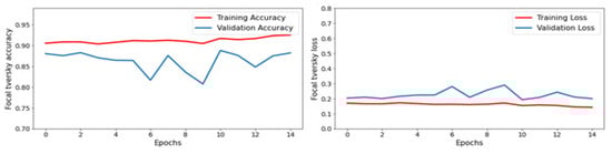 The result of this model is a probability map that shows the likelihood of every pixel in the input image belonging to the tumor region. This probability map is obtained by applying a softmax function to the network’s last layer. The training process shows that the U-Net architecture weights are optimized using backpropagation and stochastic gradient descent to reduce the loss function, which is typically binary cross-entropy. A loss function, also known as a cost function or objective function, is a mathematical function that measures the difference between the predicted values of a model and the true values of the target variable. It quantifies the model’s performance by assigning a penalty or loss based on the deviation between the predicted and actual values.