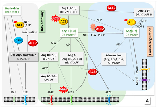 It was recognized early on during the corona virus infectious disease 2019 (COVID-19) pandemic that comorbidities such as hypertension and cardiovascular disease present major risk factors for severe illness and fatal outcomes. Two facts caused the spotlight in COVID-19 research on the renin–angiotensin system (RAS): (1) It is critical to retain blood pressure homeostasis, and according to experimental and clinical data, severe acute respiratory syndrome coronavirus type 2 (SARS-CoV-2) infection promotes a rise in blood pressure during the acute phase of infection [1]. (2) The RAS’ counter-regulatory process involves angiotensin-converting enzyme 2 (ACE2), the functional receptor of SARS-CoV-2 [2,3].