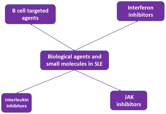 Biologic agents and small molecules in the treatment of systemic lupus erythematosus (SLE).