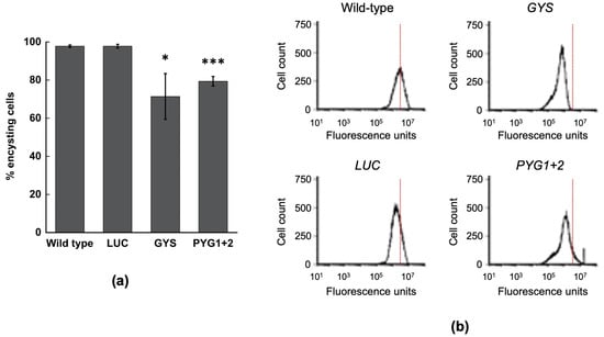 3.5. Encystation Is Impaired in the GYS and PYG1+2 RNAi Strains