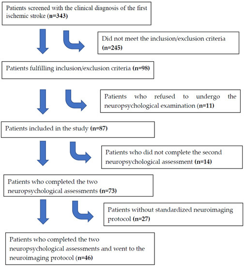 - Gottesman, R.F.; Hillis, A.E. Predictors and assessment of cognitive dysfunction resulting from ischaemic stroke. Lancet Neurol 2010, 9, 895–905. [Google Scholar] [CrossRef] [PubMed]