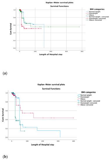 - Zangeneh, M.; Valeh, T.; Sharifi, A. Survival analysis based on body mass index in patients with COVID-19 admitted to the intensive care unit of Amir Al-Momenin Hospital in Arak–2021. Obes. Med. 2022, 32, 100420. [Google Scholar] [CrossRef]